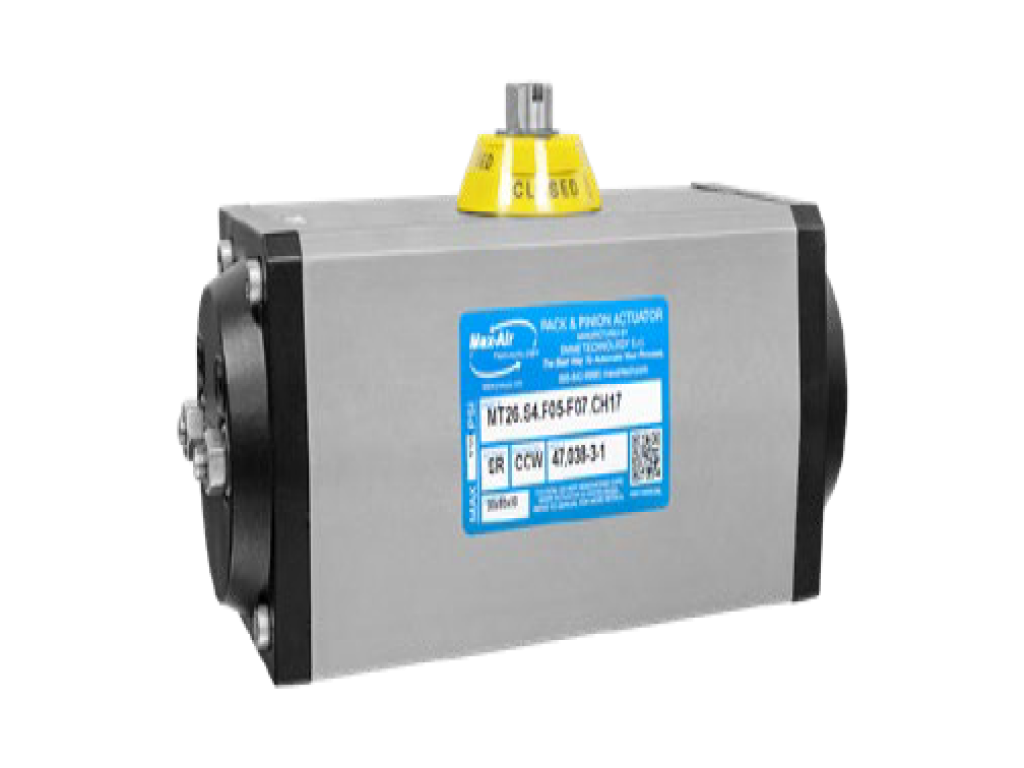 MT Series rack & pinion pneumatic actuators continue the Max-Air tradition of easy integration, flexible customization, and reliable operation. Features include two ISO bolt circle patterns drilled directly in the body, NAMUR standard mounting for accessories, and our patented ±10° adjustment for the open/closed positions, all backed by the best unlimited cycle life warranty.