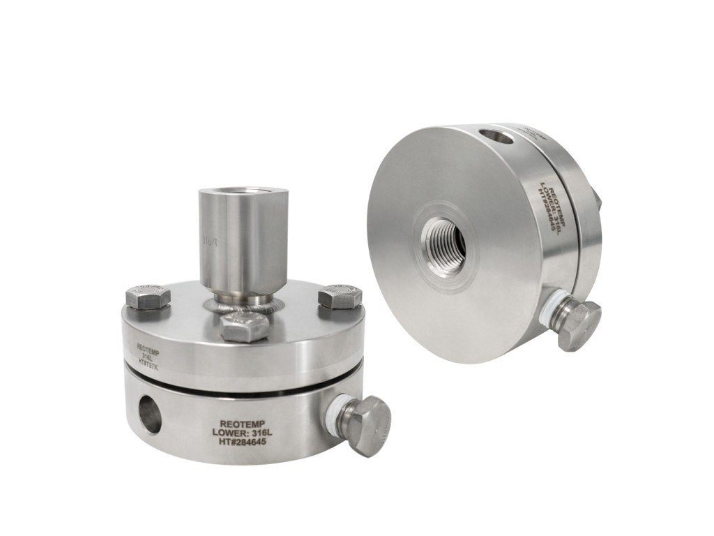 Reotemp’s Threaded Offline Welded Diaphragm Seals are designed with an upper and lower housing bolted together with a diaphragm welded to the upper housing. This removable design allows for easy cleanout of the seal chamber, while still maintaining the system fill. The threaded offline diaphragm seal can be adapted to fit almost any pressure instrument and process application.