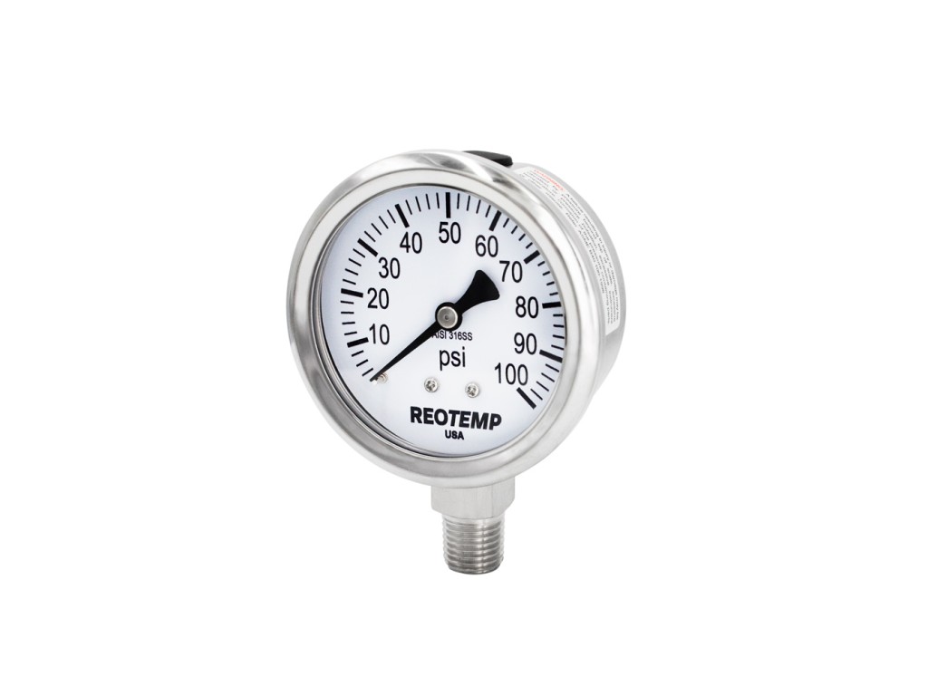 Reotemp’s Series PM25 features a stainless steel case, tube and socket, making the gauges resistant to corrosion from both environment and media. Liquid filling is recommended for severe service. The economical and attractive crimp ring design, along with a variety of convenient panel mounting adapters, make this popular gauge the right choice for many applications.
