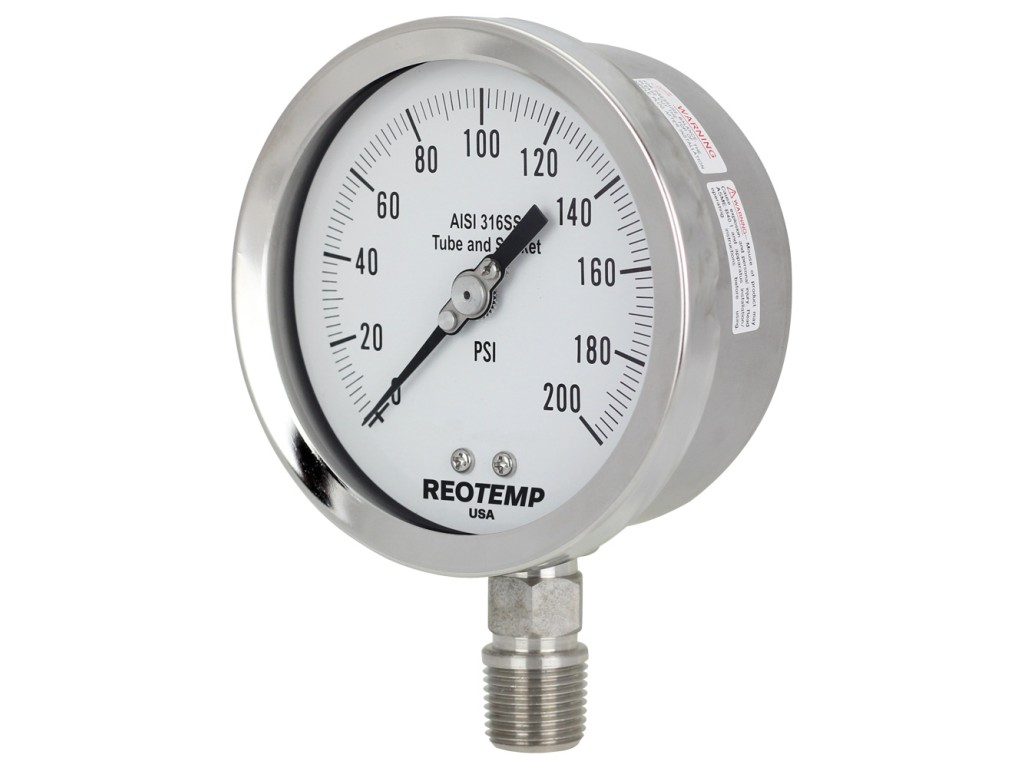 REOTEMP’s Series PR40/60 gauge offers rugged, all-welded stainless steel construction ideal for heavy-duty industrial applications. The stainless steel case, tube and socket are welded together for superior case sealing and gauge integrity. The twist-off bayonet ring offers easy-access for field repair and calibration services. Liquid filling (at the factory or in the field) is recommened for applications involving vibration. For high-corrosive, high-temp, or severe service applications, a diaphragm seal is recommended.