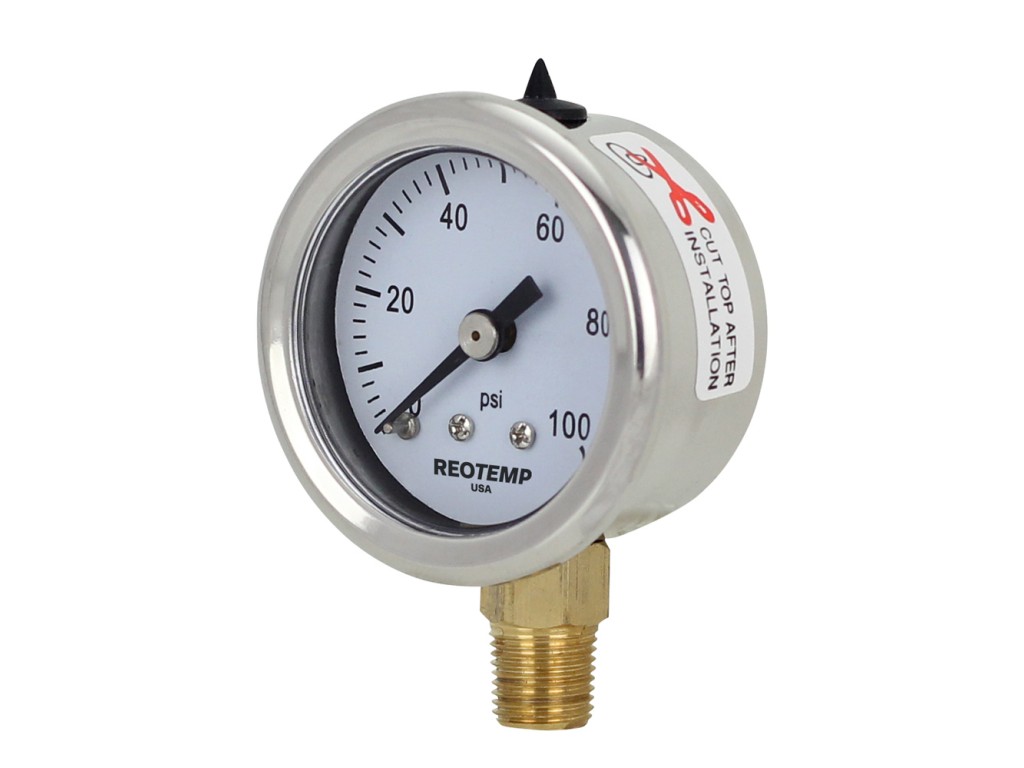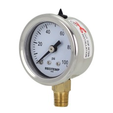 REOTEMP’s Series PG15/20 gauges are an economical choice where ambient corrosion and vibration are of concern. The stainless steel case and ring offer excellent corrosion resistance, and is fillable for vibration or pulsation applications. It is suitable for all fluids compatible with copper alloys.