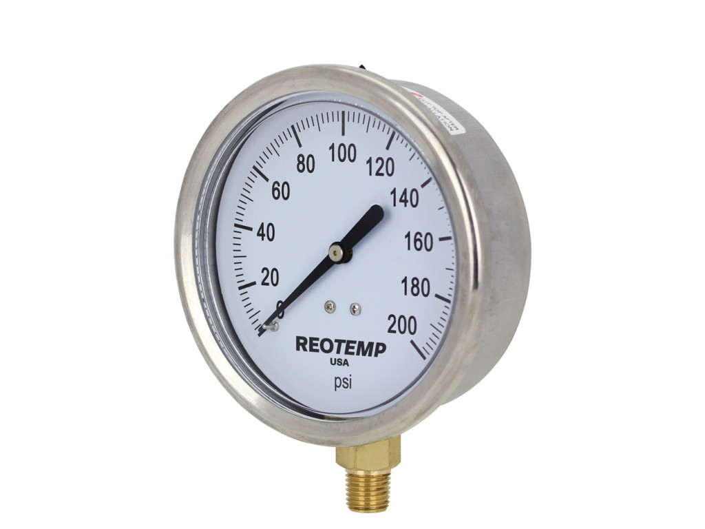 REOTEMP’s Series PG25/40C gauges are an economical choice where ambient corrosion and vibration are of concern. The stainless steel case and ring offer excellent corrosion resistance, and is fillable for applications with vibration. It is suitable for all fluids compatible with copper alloys.