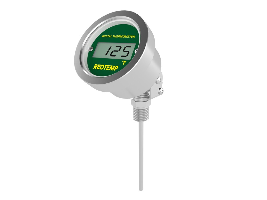 The Reotemp Adjustable Angle Digital Thermometer/Transmitter is a durable high accuracy thermometer with digital display. It features an IP67/NEMA 4X enclosure, 5 year battery life and optional transmitter output (Note: 4-20mA models are loop powered 9-36VDC).