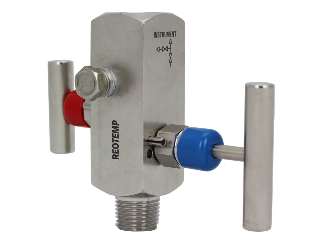 Reotemp offers a full line of USA made instrument valves and manifolds. Whether your need is to safely remove instrumentation, pressure check or calibrate your process, test differential gauges/transmitters, or throttle flow in the system Reotemp has a valve to suit your application.