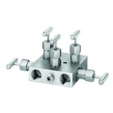 The HM57 Five Valve Manifold combines two shutoff valves, two equalizing valves, and a vent/calibration valve into a single, compact assembly. The double equalizing arrangement insures against measurement error that can occur from equalizer leakage between high and low pressure connections, making the HM57 ideal for custody transfer applications.