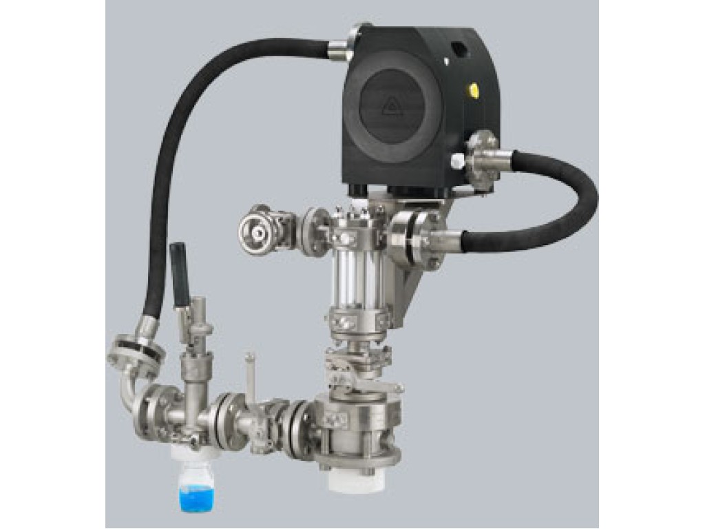 with air driven diaphragm pump for safe, representative and closed sampling of aggressive or toxic media out of reactors and tanks –