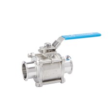 Three piece, full bore sanitary ball valves, low ferrite 316L, 1/2" - 4" (DN15 - DN100), TFM seats (cavity and non-cavity) and seals, for pharma clean steam, air and gas, acids and pneumatic conveyance of pharma powders.